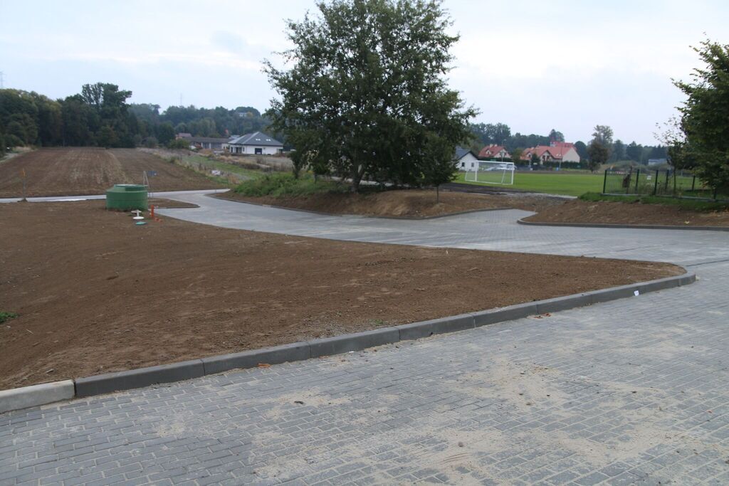 utwardzenie kostką betonową o grubości 8 cm powierzchni ok. 1260 m² (w tym droga o długości 98 m i szerokości 5 m),