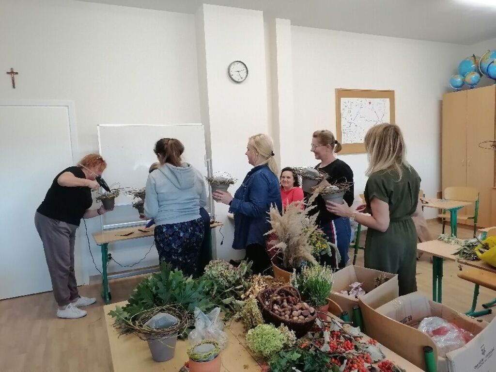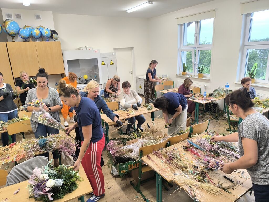 Miesiąc wrzesień upłynął pod znakiem prowadzenia warsztatów z zakresu florystyki. Miejscem prowadzenia warsztatów była gościnna placówka Zespołu Szkolno-Przedszkolnego w Łuszczowie. Grupa 30 uczestników przeszła bogate szkolenie, które obejmowało zagadnienia teoretyczne omawiające rolę florystów, przegląd narzędzi i materiałów, podstawy botaniki użytkowej i techniki florystyczne. Nabyta wiedza została wykorzystana podczas części praktycznej szkolenia, w ramach której uczestnicy wykonali rozmaite kompozycje okolicznościowe i dekoracyjne. Za sprawą nietuzinkowej grupy uczestników, a także dzięki ogromnej pasji profesjonalnej kadry prowadzącej warsztaty, zajęcia odbywały się w przyjaznej i wesołej atmosferze. Jesteśmy pod wrażeniem zaangażowania uczestników projektu. Ich prace zostały wykonane z wielką starannością i charakteryzują się nienaganną estetyką i unikalnym stylem.